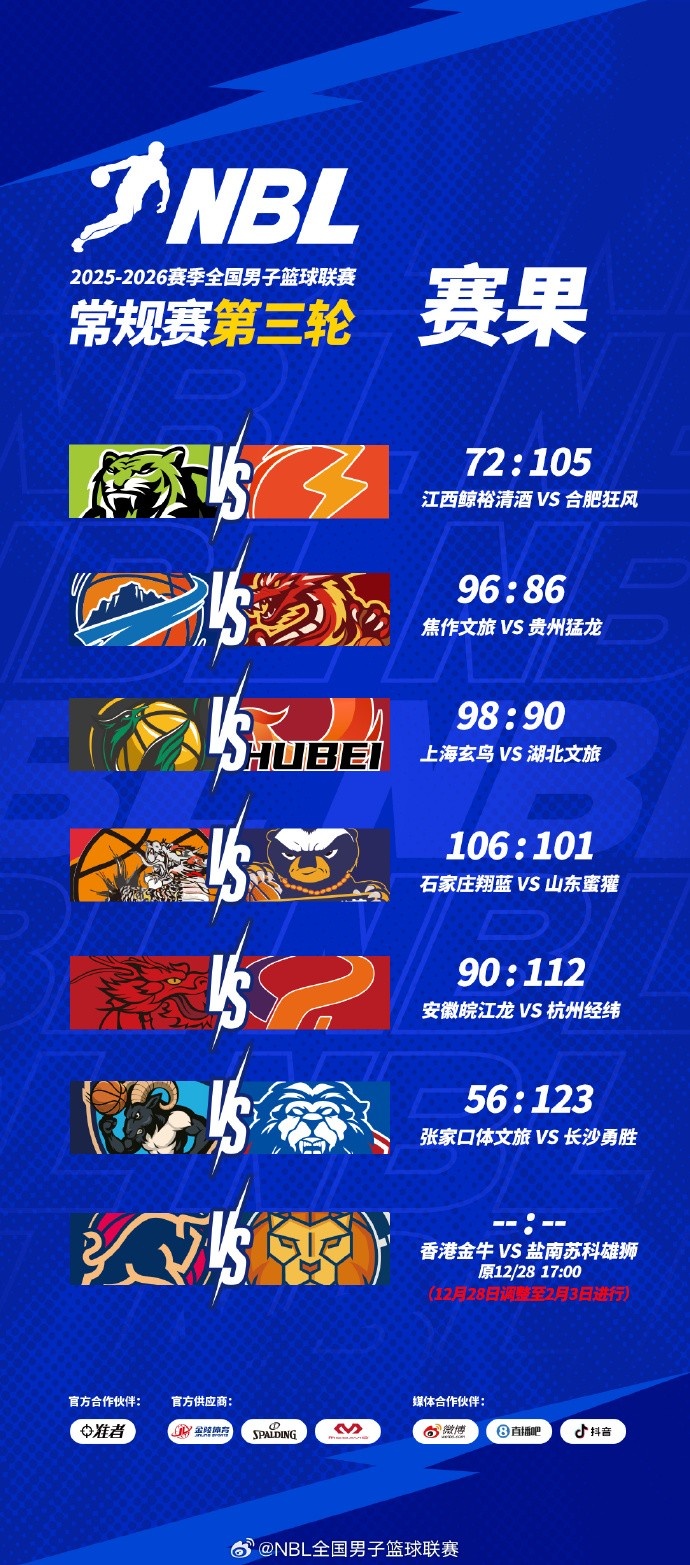 NBL今日戰(zhàn)報(bào):石家莊翔藍(lán)險(xiǎn)勝山東蜜獾 張家口體文旅不敵長沙勇勝 NBL今日戰(zhàn)報(bào):石家莊翔藍(lán)險(xiǎn)勝山東蜜獾 張家口體文旅不敵長沙勇勝 2025-12-28