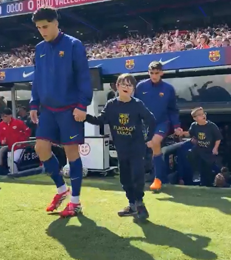 3月22日訊 西甲第29輪比賽,巴薩在諾坎普迎戰(zhàn)巴列卡諾。本場比賽之前,巴薩球員手牽唐氏綜合癥球童走進球場,表達了對他們的關愛。