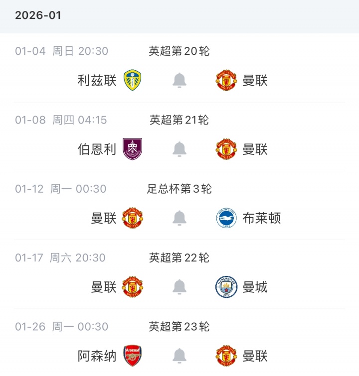 曼聯(lián)未來賽程↓