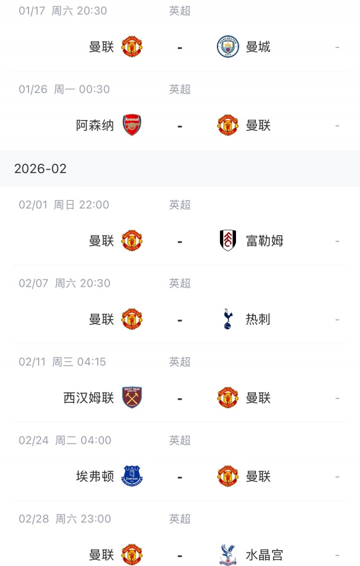 曼聯(lián)未來賽程:
