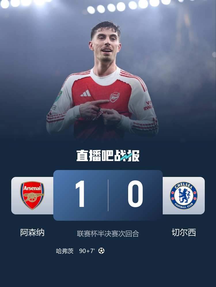 2月4日訊 北京時(shí)間4:00,聯(lián)賽杯半決賽次回合阿森納vs切爾西,比賽在酋長(zhǎng)球場(chǎng)打響!上半場(chǎng),桑切斯神勇?lián)涑鲆蚩ㄆひ亩瞪?!下半?chǎng),哈弗茨補(bǔ)時(shí)弒舊主。最終,阿森納次回合1-0戰(zhàn)勝切爾西,總比分4-2晉級(jí)聯(lián)賽杯決賽!決賽將會(huì)對(duì)陣曼城vs紐卡的勝者。