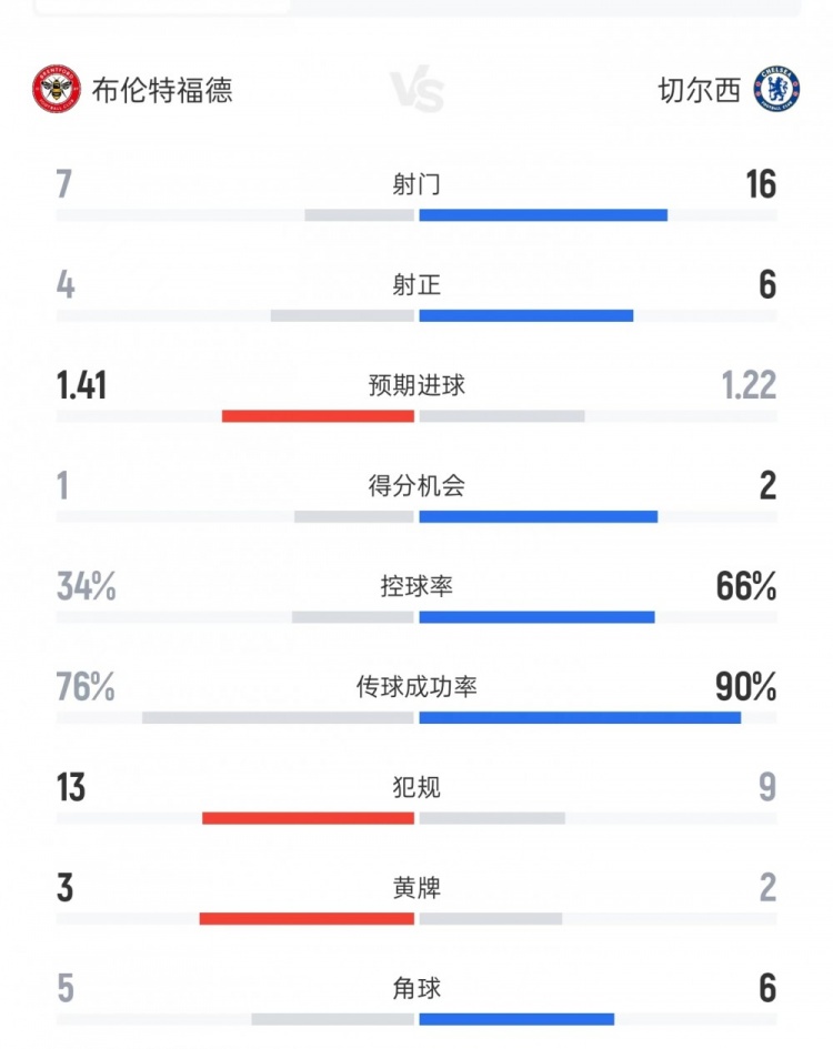 9月14日訊 英超第4輪比賽,切爾西客場2-2戰(zhàn)平布倫特福德。