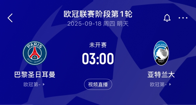 衛(wèi)冕冠軍巴黎登場,巴黎賽季開始后在法甲狀態(tài)火熱迎來四連勝。主場面對“真藍黑”亞特蘭大,能否全取3分?
