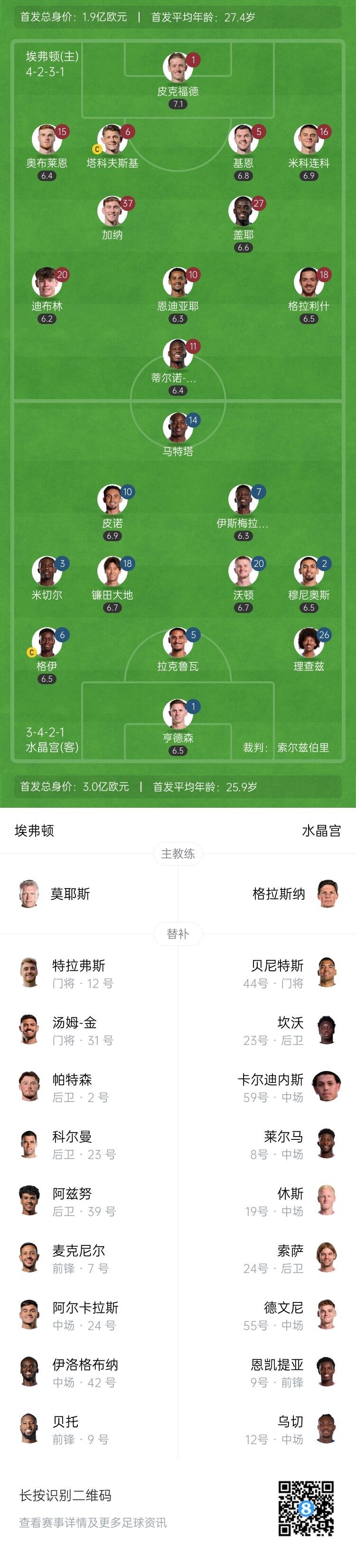 10月5日訊 北京時間10月5日晚上21:00,英超第7輪,埃弗頓坐鎮(zhèn)希爾迪金森球場對陣水晶宮。上半場,皮克福德精彩撲救,穆尼奧斯破門。半場戰(zhàn)罷,埃弗頓0-1水晶宮。