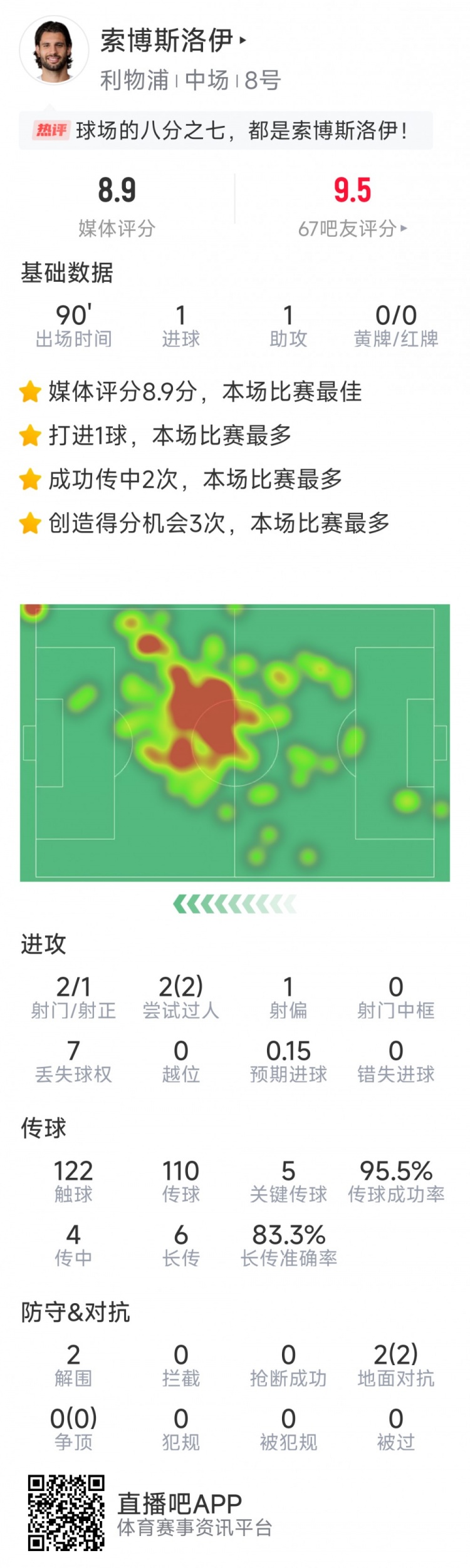 此役索博斯洛伊為利物浦踢滿全場,并貢獻傳射,利物浦官方宣布,他當選本場比賽利物浦隊內最佳球員。