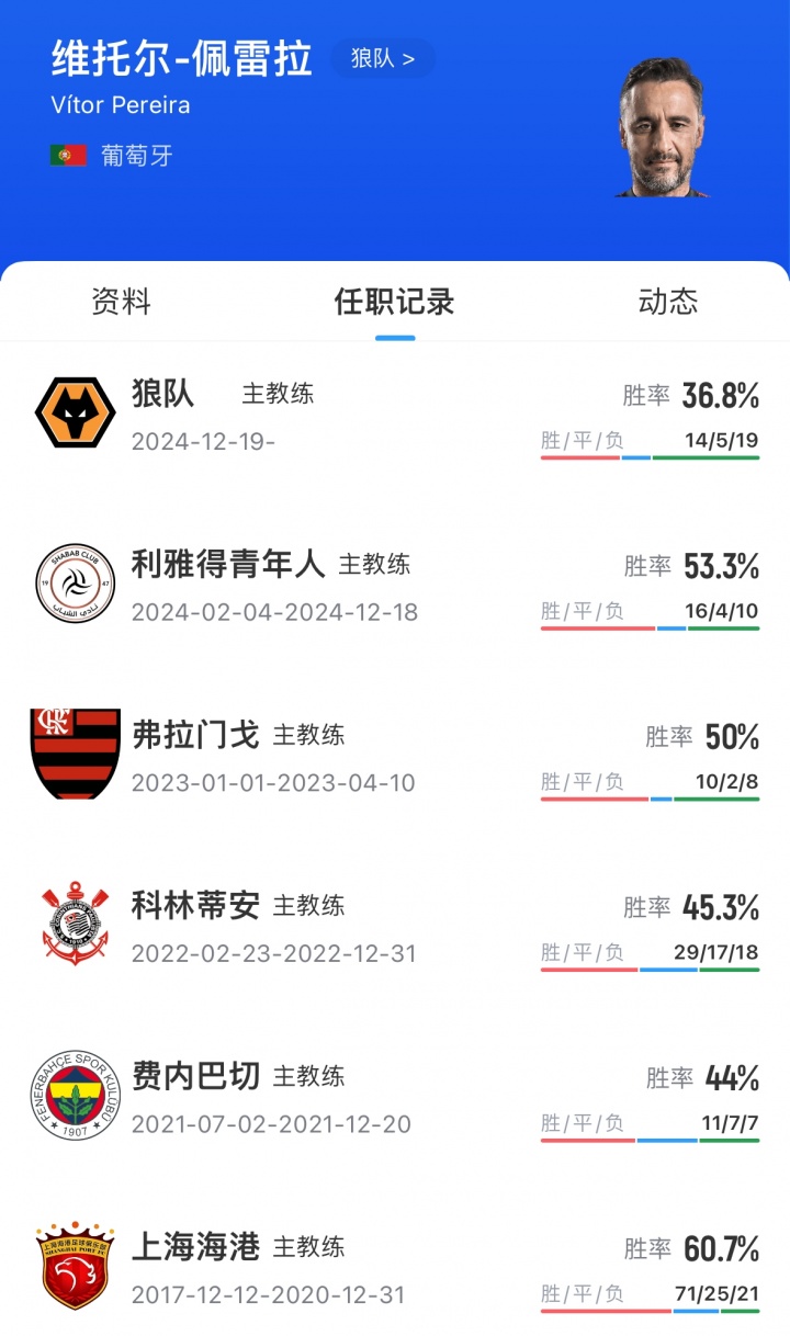 佩雷拉于去年12月上任狼隊主帥,上賽季幫助球隊完成保級。今年9月中旬,在英超開局4連敗的情況下,他與狼隊續(xù)約三年。