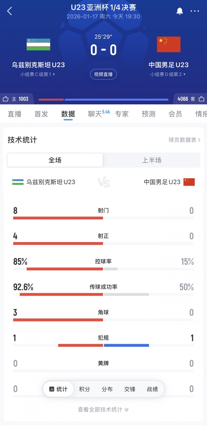 非常被動!國足U23控球率低至15%,被烏茲別克斯坦8射4正