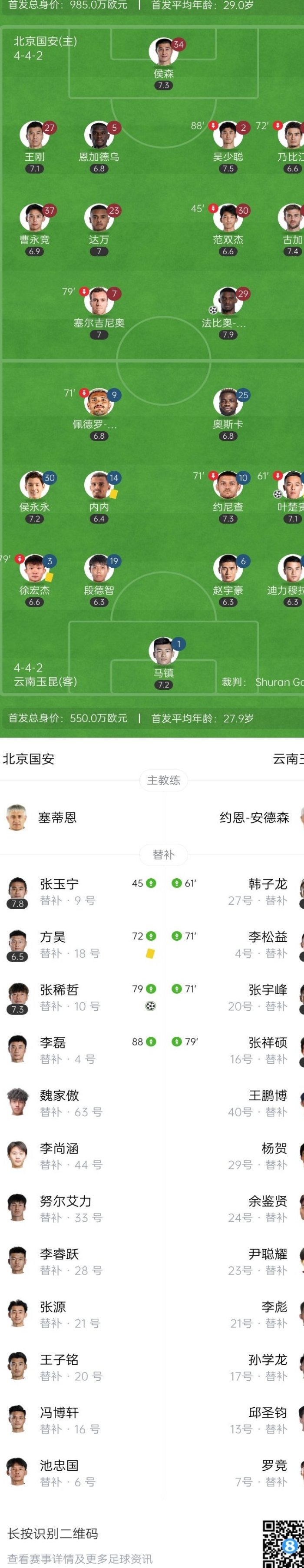 第30分鐘,云南玉昆右路攻勢(shì),約尼查第一下傳中被擋回,隨后人群中將球一捅,葉楚貴點(diǎn)球點(diǎn)附近直接推射破門(mén)!云南玉昆客場(chǎng)1-0領(lǐng)先北京國(guó)安↓